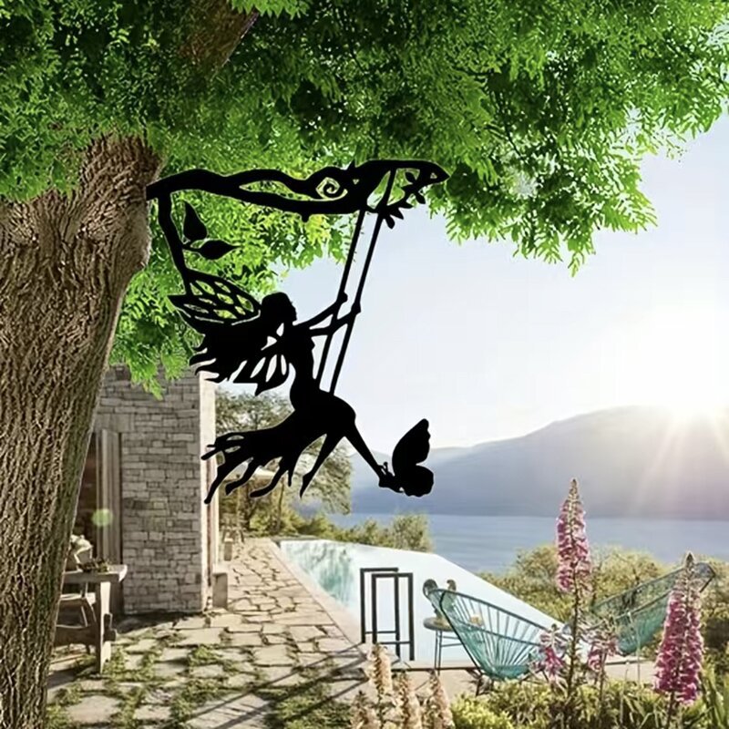Swing Fairy Silhouette Art Metal Garden Decoration