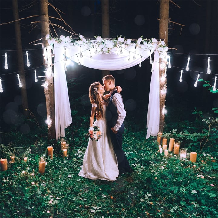 【Waterproof & Wide application】The outdoor string lights can withstand all kind of weather. It can be lighting as usual whether it is windy or rainy when the solar battery is fully charged. If you want to decorate your garden, courtyard, roof, porch, home, etc, this solar water drop string lights will be your ideal choice.