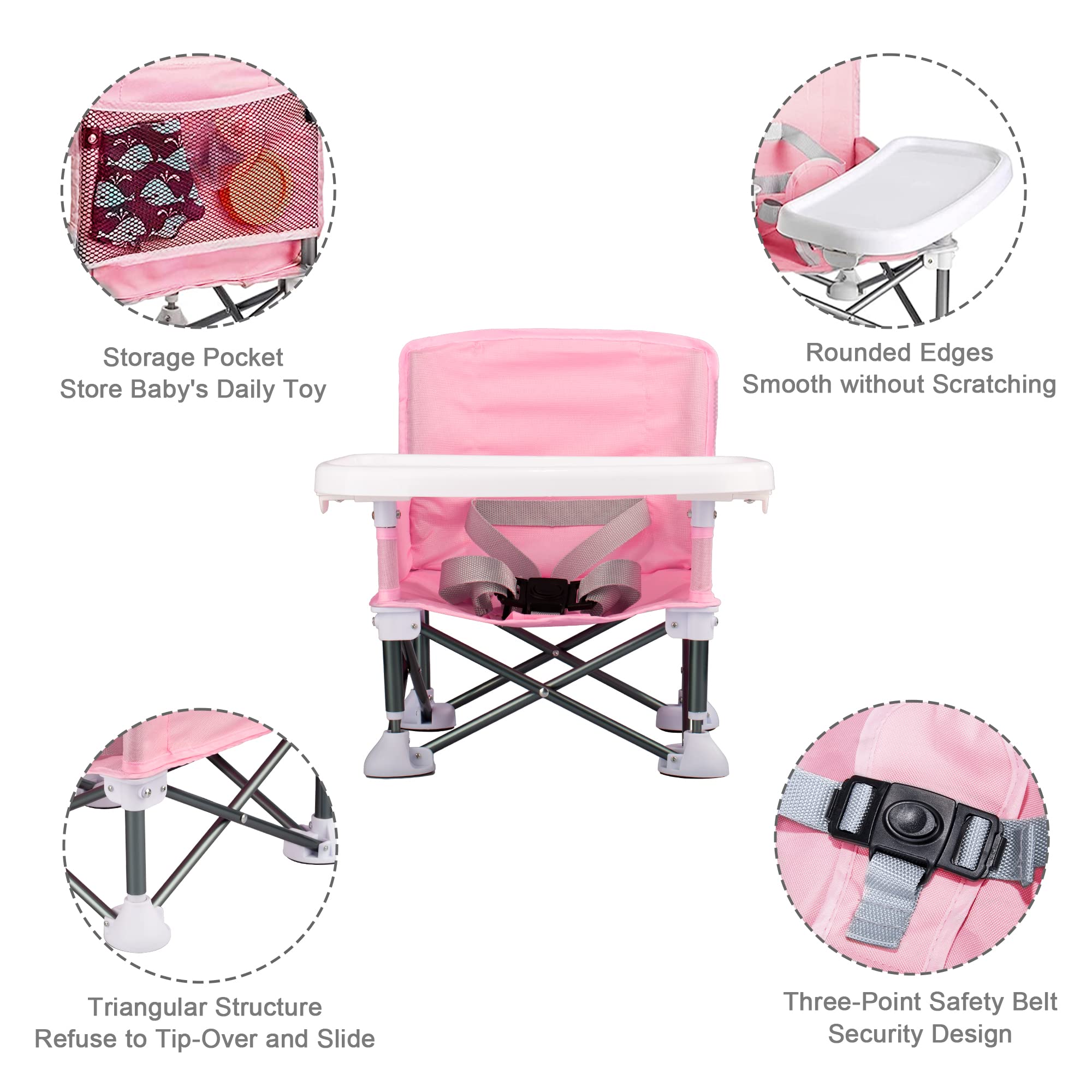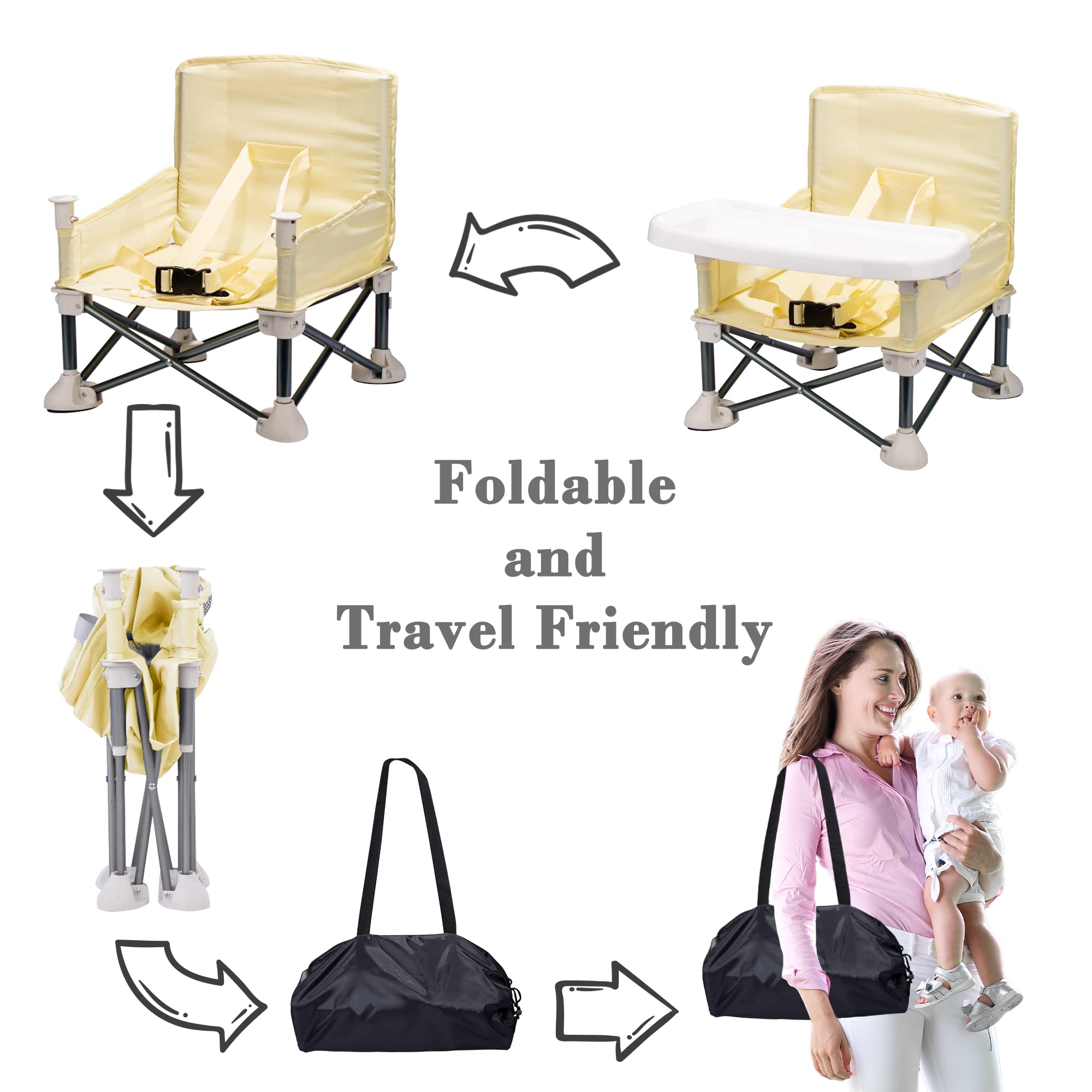 - PORTABLE/TRAVEL-FRIENDLY | Planning a day at the beach, a weekend camping, a visit to Grandma’s house, going out to dinner or spending a quiet evening at home? Portable Booster Seat will conveniently, comfortably and safely provide the perfect space for baby to sit, eat, and play. Lightweight FRUSTRATION-FREE folding frame expands and compactly folds down for travel. The rear pocket for bibs & spoons, plus a shoulder carry bag for sanitary storage make the Portable Booster Seat the ideal travel booster chair.