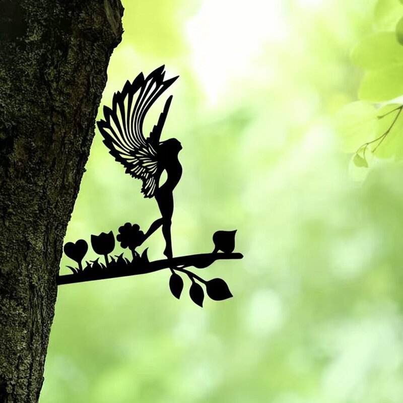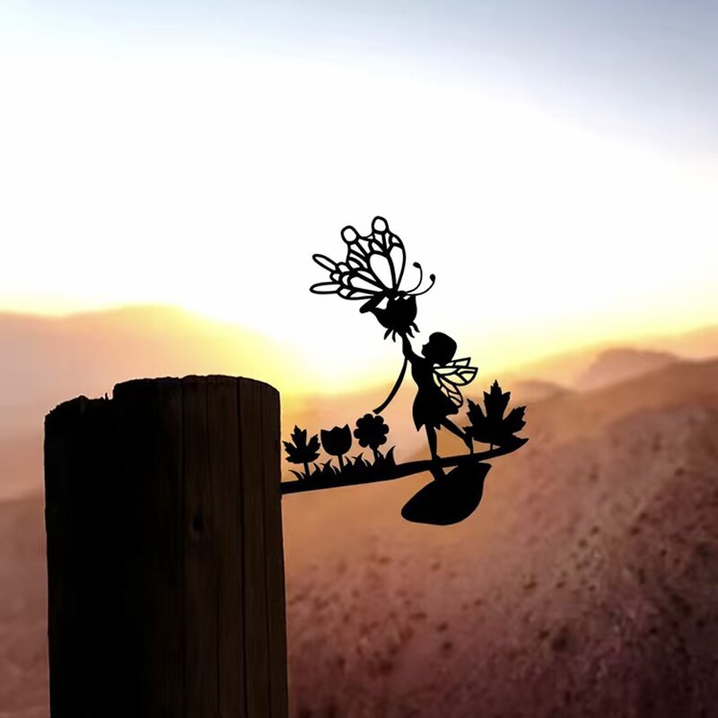 Flower Fairy Silhouette Art Metal Garden Decoration