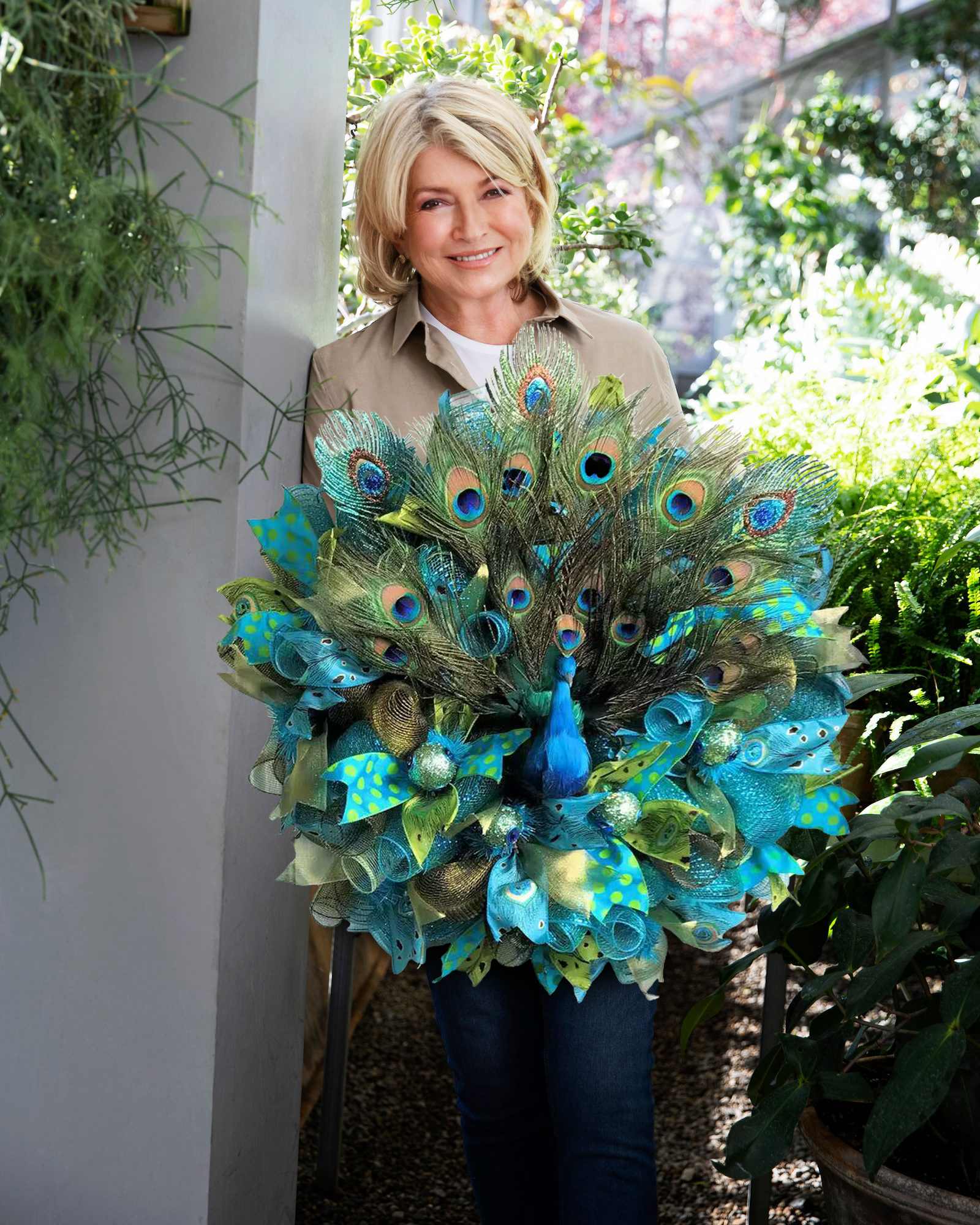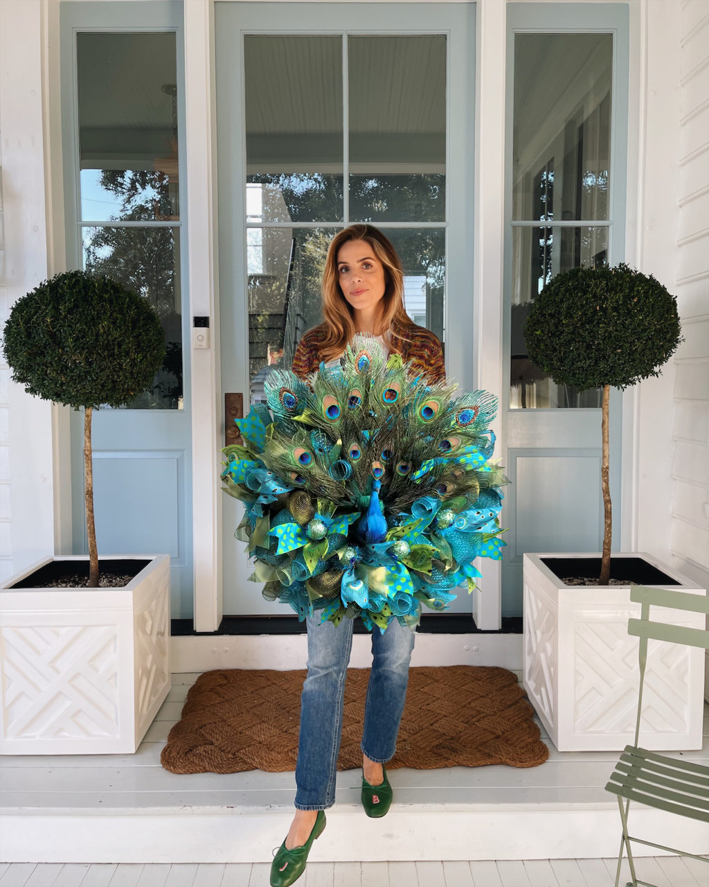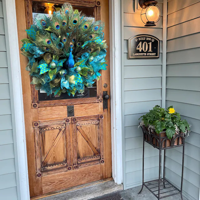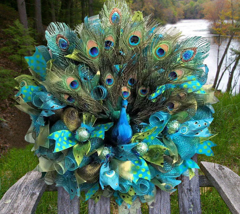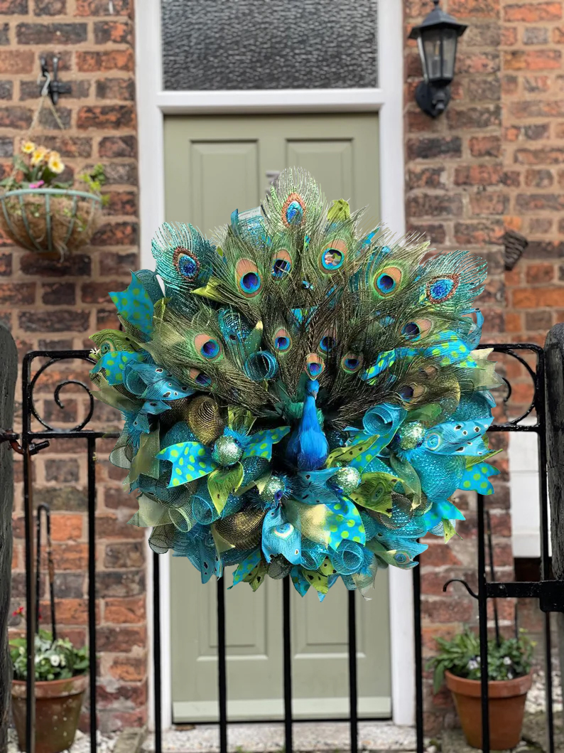 The mix of blue and green adds a different beauty to this peacock wreath! This wreath is very hospitable. You will fall in love with it at the front door! Your friends will be surprised by your decoration! Because they have never seen such a wreath! This will open a new chapter in your circle of friends, you will lead a new trend!