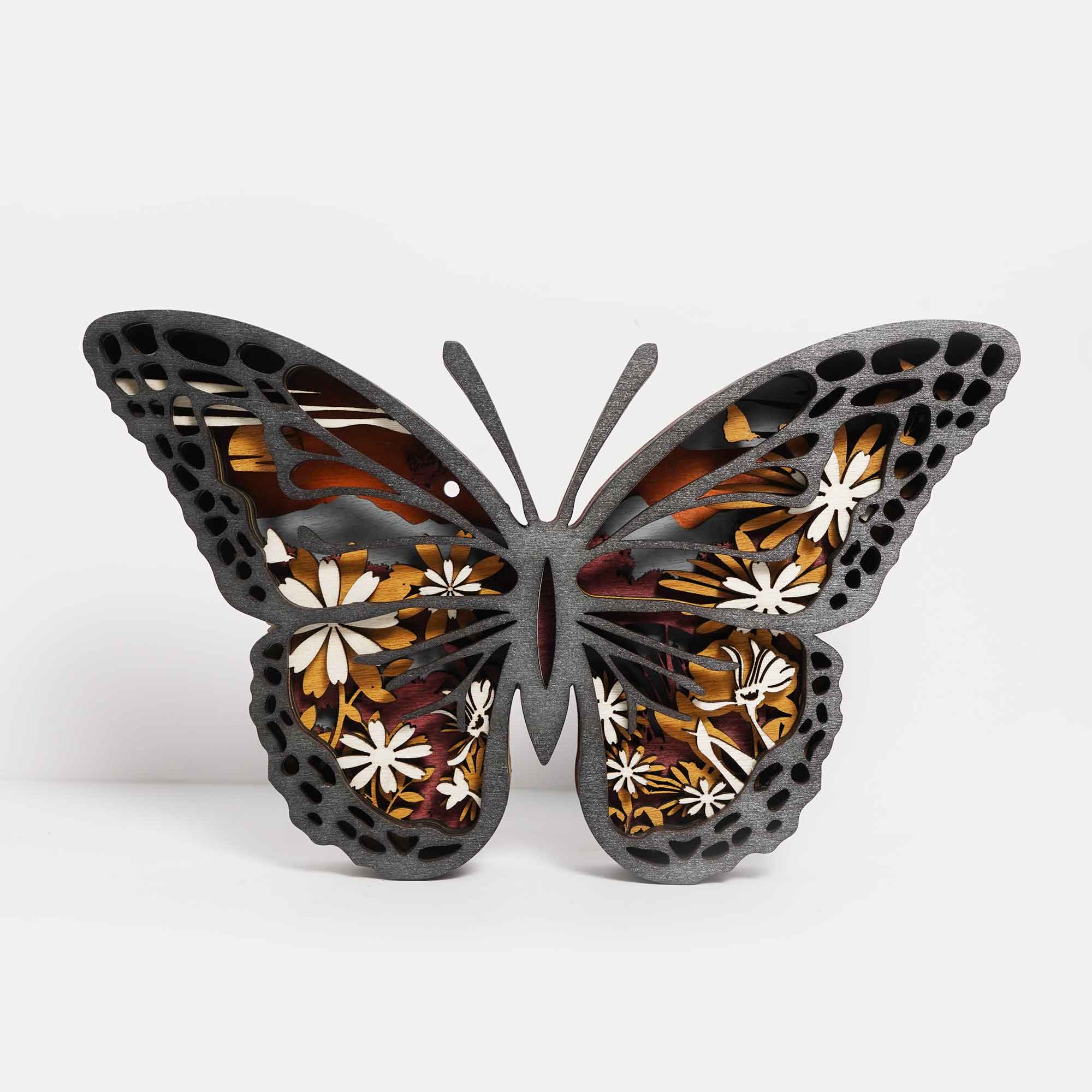 Our designer chose the colorway the same as the monarch butterfly and chose milkweed as the inside design of the butterfly. The details at the tip of its wings are also well shown on our product. This one here is designed to remind people of habitat destruction and climate change.