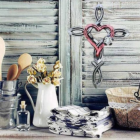 This Natural horseshoe cross with heart is made of recycled horseshoes, adhering to the concept of environmental protection, and discovering the goodness that can be used in life, each one is unique.
